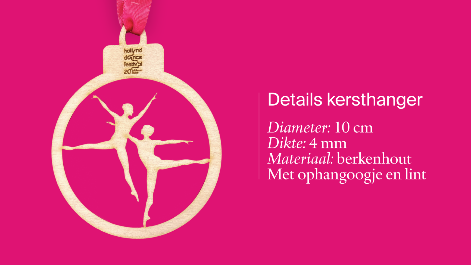 Dit jaar presenteert Holland Dance Festival het HDF Christmas Package, een bijzonder kerstcadeau met twee inspirerende dansvoorstellingen én een exclusieve houten kersthanger, speciaal ontworpen voor de 20e jubileumeditie.
